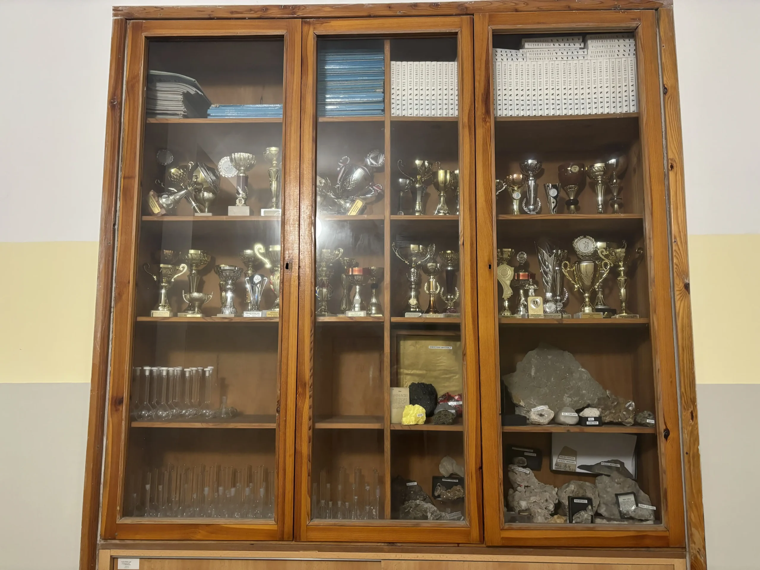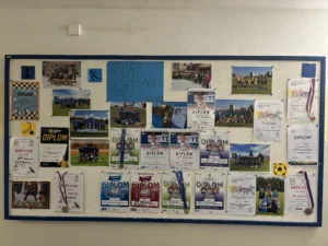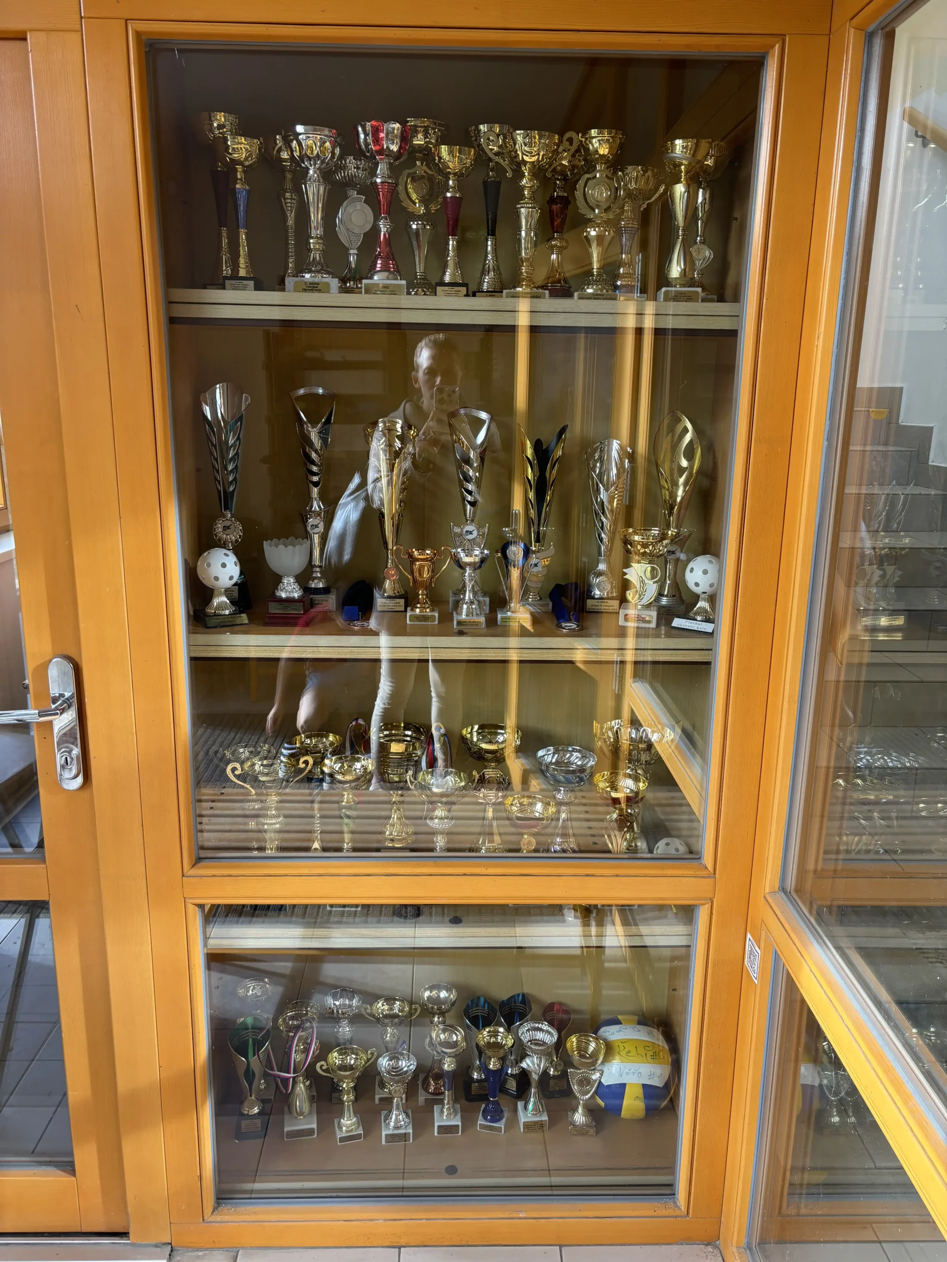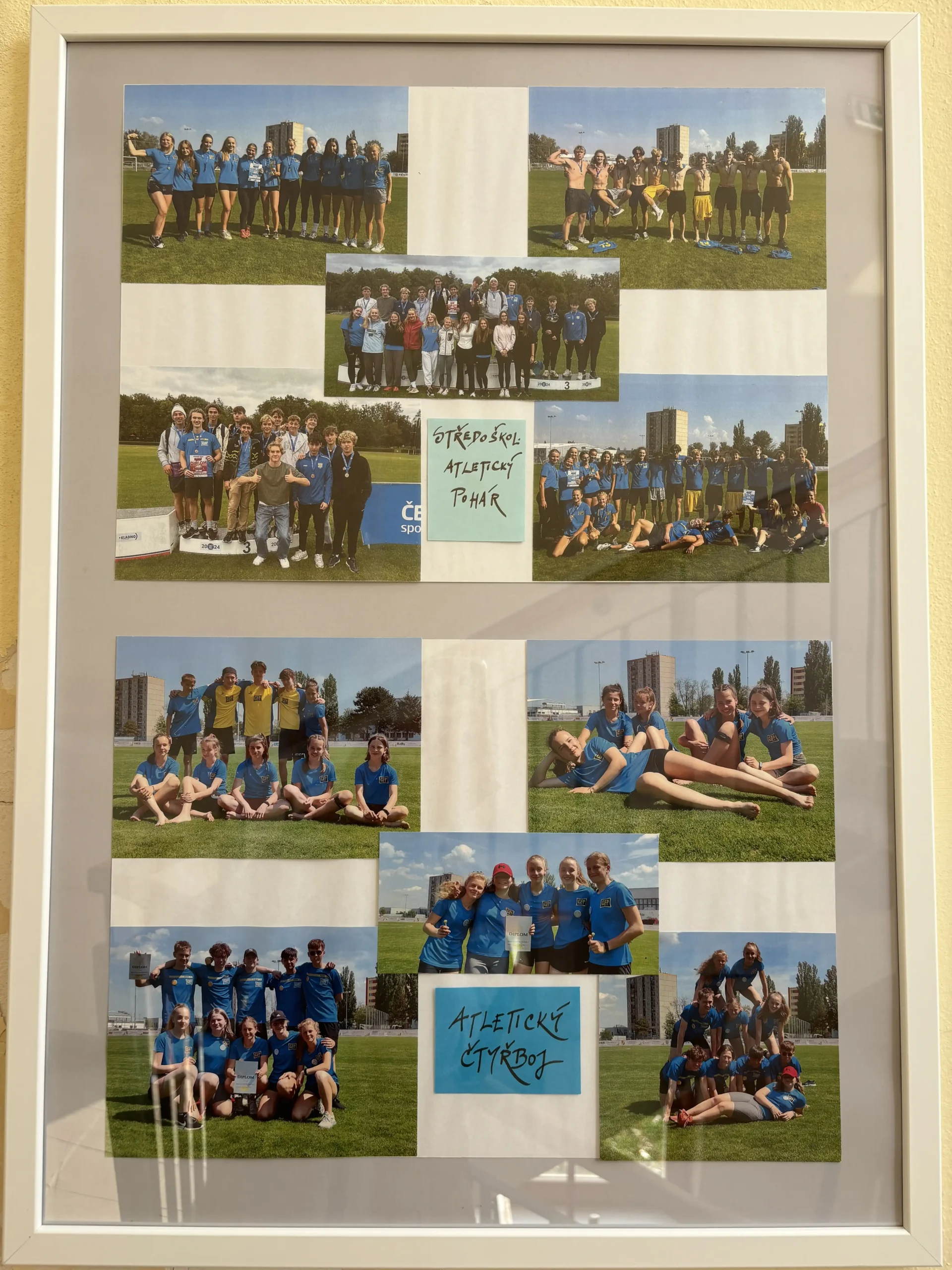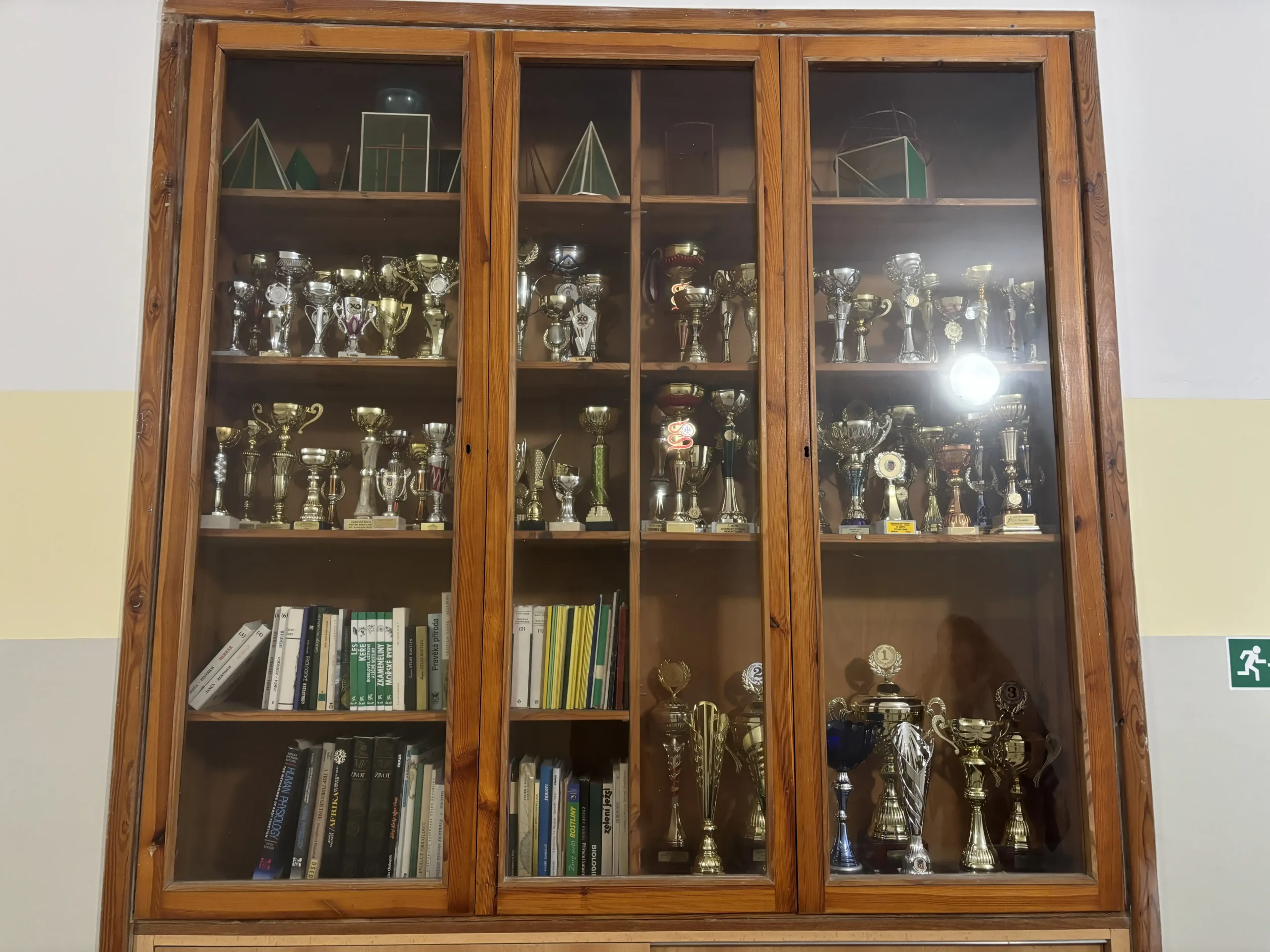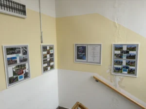 Od projektových dnů 2025 se mohou všichni návštěvníci GFP těšit z inovované výstavy pohárů v prostoru u ředitelny. Před sborovnou byly nově využity dříve opomíjené vitríny k vystavení získaných trofejí a aktualizována byla rovněž vitrína ve sportovní hale. Administrativní část týmu všechny poháry přehledně zpracovala do tabulek. K nahlédnutí jsou nyní také systematicky roztříděné diplomy ze soutěží uložené v šanonu a aktualizované výkonnostní i další tabulky umístěné ve vitrínách a na webu Erasmus+. Schodiště ve sportovní hale se navíc doslova „rozsvítilo“ novými panely s fotografiemi z akcí TV GFP.