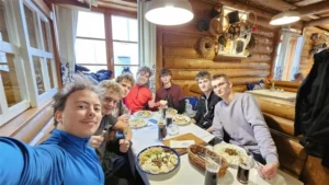 7:48 nasednutí do vlaku – oběd + svačina ve